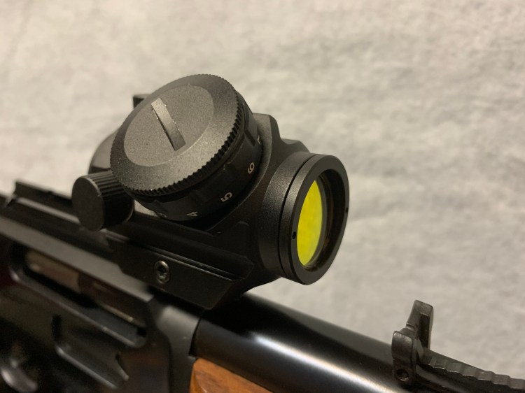 As I said, red-dots don’t necessarily make your shooting more accurate, but they make target acquisition much faster. The key is, that with a red-dot you focus on the target, and don’t even look at the sight. This is very different from iron sights or conventional rifle scopes. With your eyes on the target, when you bring the rifle up and get cheek weld with the stock, the target dot should appear on your target. You don’t have to worry about centering the dot in the sight. Where the dot is on the target is where the round is going to go. The TRS-25 has no magnification, but depending on the caliber of your rifle, you should be able to land accurate hits anywhere from the muzzle to 300 yards. With mine at a 100 yard zero, I have no problem getting rapid hits from 25 to 200 yards. The target dot covers a three inch diameter circle of the target at 100 yards, so if you’re looking to shoot half inch groups from a bench, a red-dot may not be what you’re looking for. But, if you want to quickly acquire a shot into the vital zone of a moving game animal, the TRS-25 is the tool for the job.