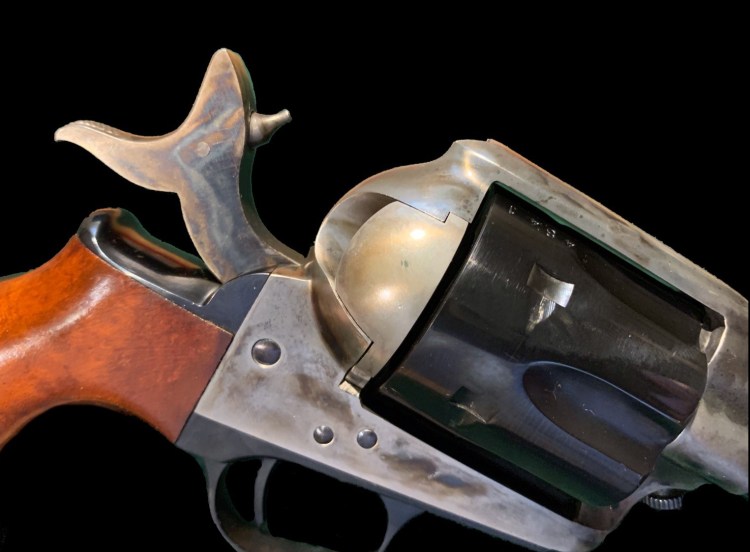 The action of Cimarron’s revolver remains true to the original Colt design. While other single-actions have incorporated internal firing pins, and transfer bar safety features, the Thunderer retains the firing pin affixed to the hammer. Because of this, there are still the audible three clicks as the hammer is drawn back. The first is when the hammer clears the safety position, the second is at half cock, and the third at full cock. The safety position is designed to allow the revolver to be loaded with all six rounds in the cylinder, and carried safely. However, traditionally, the hammer was in the safety position over an empty chamber in the cylinder, and the manual that comes with the Thunderer recommends this as well.