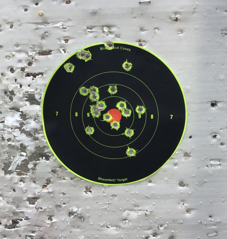 On the range, this pistol is a pleasure to shoot. I tested it’s function with a variety of full metal jacket and hollow point ammunition, and there were no malfunctions. For practical accuracy testing, I fired five round, rapid fire groups at five, seven, and ten yards using a six inch diameter target. All rounds landed on target. The only hiccup was my first ten yard group. It landed high. While all rounds were on target, the group was still higher than the rest. One of the problems with reviewing a variety of different handguns is that you have to be very aware of your grip. I found that I had changed my grip slightly because of my relative unfamiliarity with the pistol. Once I corrected my grip, the second group at ten yards moved back to center.
